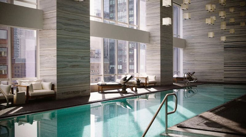 El hotel cuenta con muchos amenities para quienes tengan tiempo de disfrutarlos: una pileta de agua salada "cubierta con baño de vapor de eucalipto", un spa con tres salas de tratamiento y un gimnasio abierto las 24 horas de 171 metros cuadrados "con vista al horizonte de Manhattan".