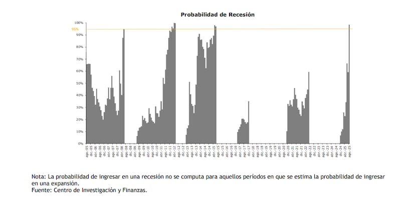El informe también contextualizó el momento con la evolución del EMAE. En su última medición disponible, correspondiente a junio, la serie desestacionalizada del indicador oficial mostró una caída de 0,09%. Con dos trimestres consecutivos de bajas en la serie tendencia-ciclo, los técnicos de la UTDT señalaron que la economía entraría formalmente en recesión.