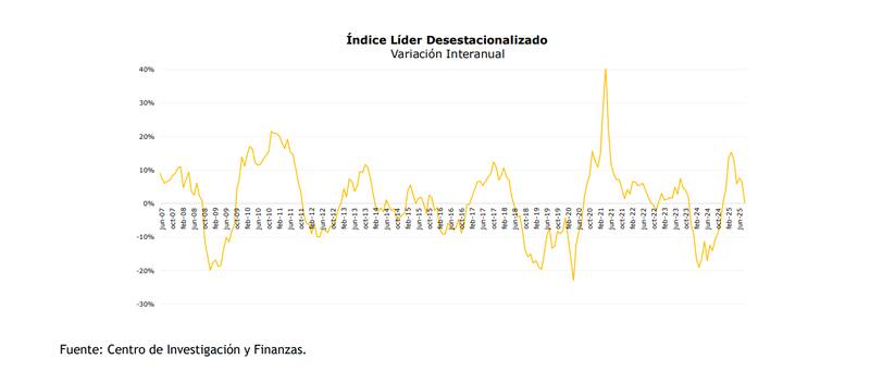 El informe del Índice Líder, conocido por sus siglas ILCIF, no dejó lugar a dudas. "El Índice Líder cae 4,72% en su versión desestacionalizada durante agosto de 2025. La serie tendencia-ciclo cae 1,22%", señaló el reporte. En términos interanuales, la variación fue levemente positiva, pero insuficiente para revertir el cambio de tendencia.