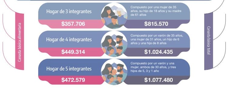Según la Canasta Básica Total (CBT) de la Ciudad de Buenos Aires y alrededores es de $ 302.151 por hogar.