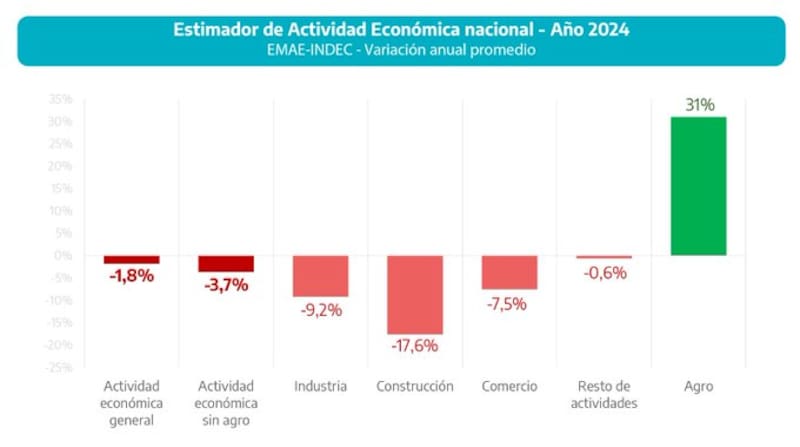 López también se refirió al indicador de actividad económica que, según festejó el propio presidente Javier Milei, "entre diciembre 2024 y 2023 creció 4,8%" habiendo hecho "el ajuste fiscal más grande de la historia".