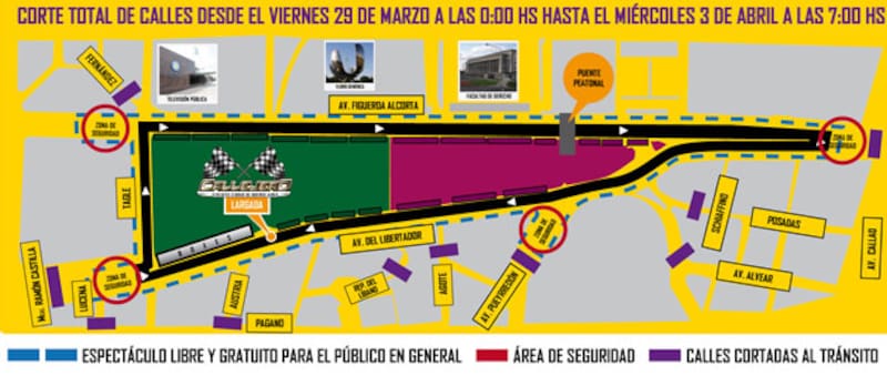 El corte se inició a la 0 hora y se extenderá hasta las 22 del domingo en el circuito de la carrera conformado por las avenidas del Libertador, Figueroa Alcorta, Pueyrredón y la calle Tagle, lo que generó inconvenientes a los conductores que habitualmente se desplazan por esa zona.
