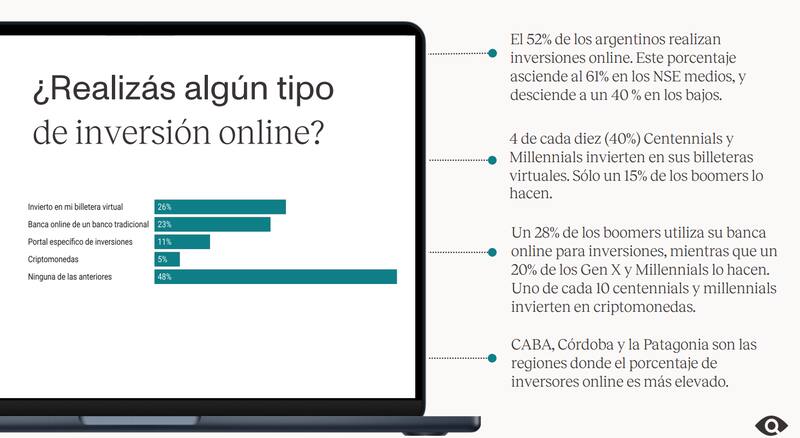 Un estudio reciente de la consultora "Sentimientos Públicos" reveló que el 52% de los argentinos realiza inversiones online. Sin embargo, las criptomonedas, una de las opciones disponibles, enfrentaron un fuerte rechazo, especialmente entre los adultos mayores de 55 años.
