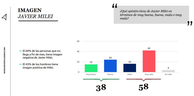 Por su parte, la figura de Javier Milei sigue generando opiniones divididas. Un 58% de los encuestados tiene una percepción negativa de él, mientras que un 38% lo ve de manera positiva. Este resultado revela que, aunque Milei logró captar una parte importante del electorado, su figura aún genera resistencias, especialmente entre aquellos que se encuentran en una situación económica vulnerable.