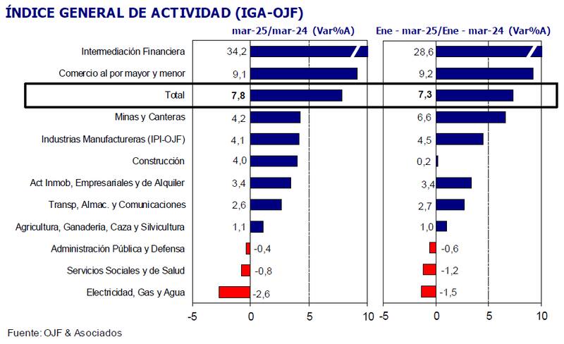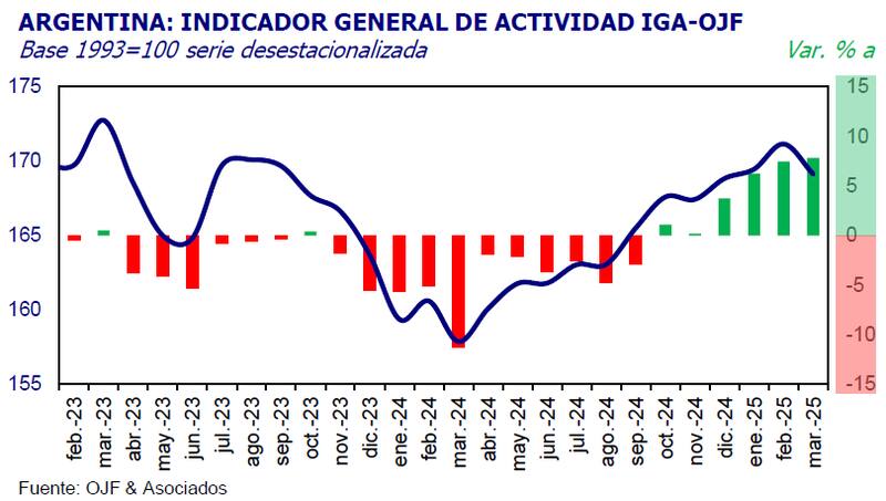 Se trata del Índice General de Actividad (IGA), un informe que OJF y Asociados, la consultora que encabeza el economista Orlando Ferreres,elabora desde hace varios años. De acuerdo al reporte, el nivel de actividad registró un crecimiento de 7,8% interanual en el tercer mes del año, acumulando en el primer trimestre una suba de 7,3%.