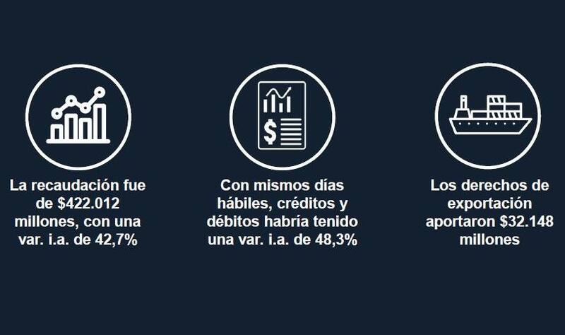 Los derechos de importación, en cambio, presentaron un incremento del 65%, recaudando $ 17.269,9 millones.