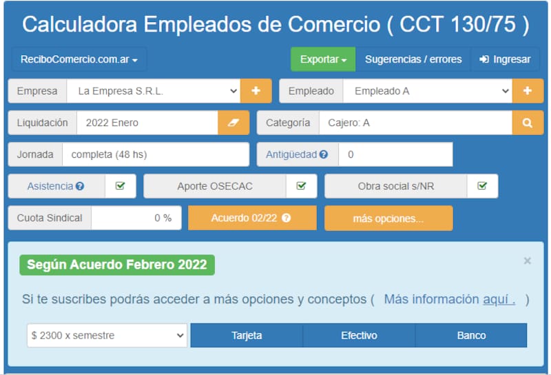 El portal JorgeVega.com dispone de la Calculadora de salarios 2022 para los empleados de Comercio, con la última actualización del incremento del 3% no remunerativo.