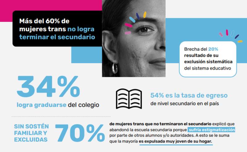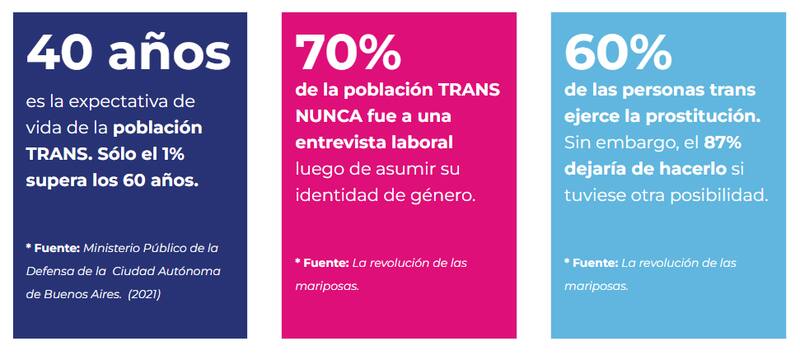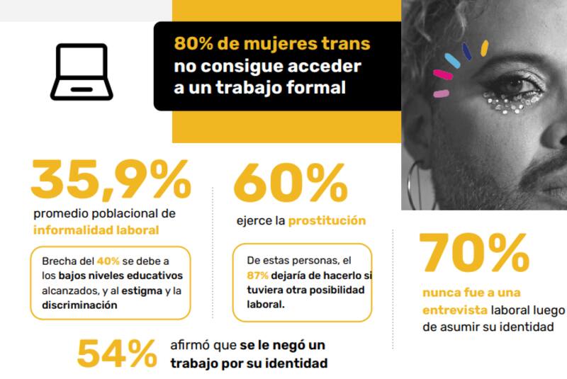 La expectativa de vida de las personas travesti trans es de 35 a 41 años. Sólo el 6% tiene títulos que le permiten llegar al mercado laboral y el 50% no terminó el secundario. Son sólo algunos números detrás de las historias de vida de personas que buscan tener un empleo formal. El 87% quiere tener otras oportunidades y no ejercer el trabajo sexual que es la principal ocupación en la comunidad.