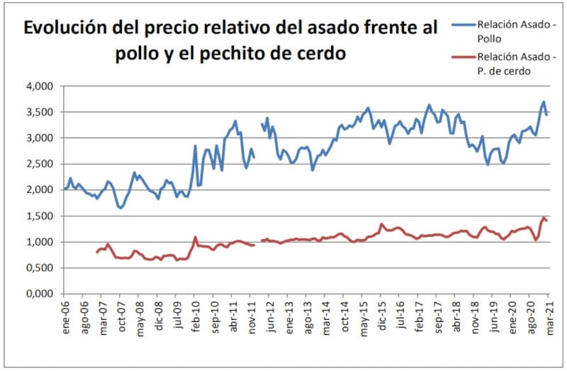 No está claro si esto responde al acuerdo de precios en diez cortes de gran consumo, logrado por el Gobierno con los frigoríficos exportadores, pero lo cierto es que se observa una fuerte desaceleración e incluso un avance mucho menor que en las carnes sustitutas como el pollo o el cerdo.