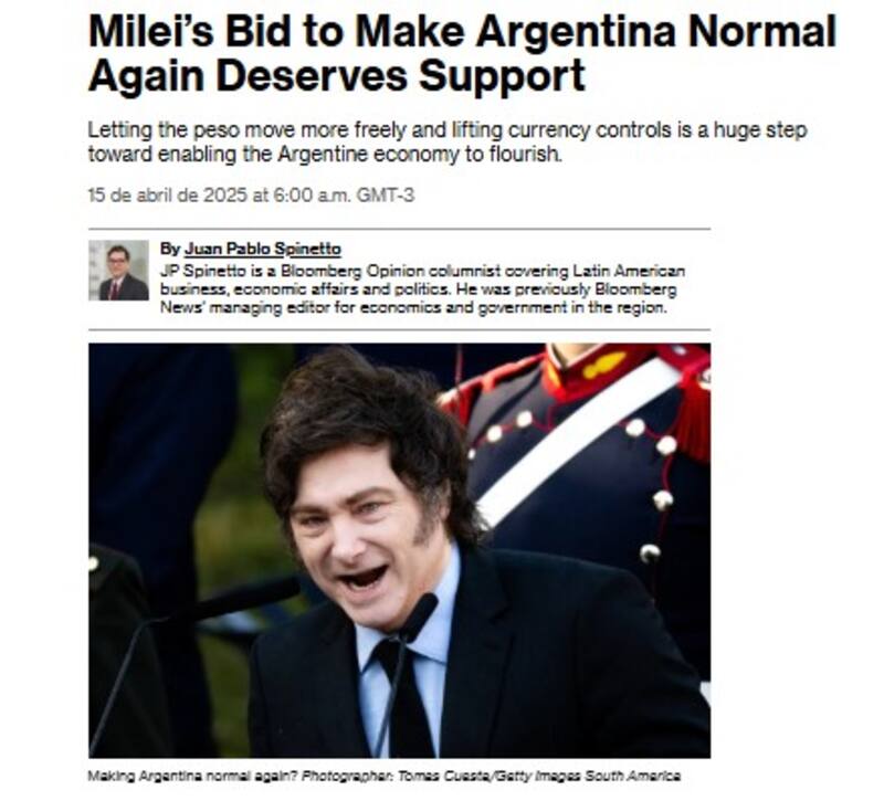 El actual editor jefe para América Latina de la reconocida agencia desconoce si la administración libertaria planeó con antelación este cambio en el rumbo económico, aunque celebró su implementación: "Milei merece crédito por adaptar su estrategia a las circunstancias cambiantes".
