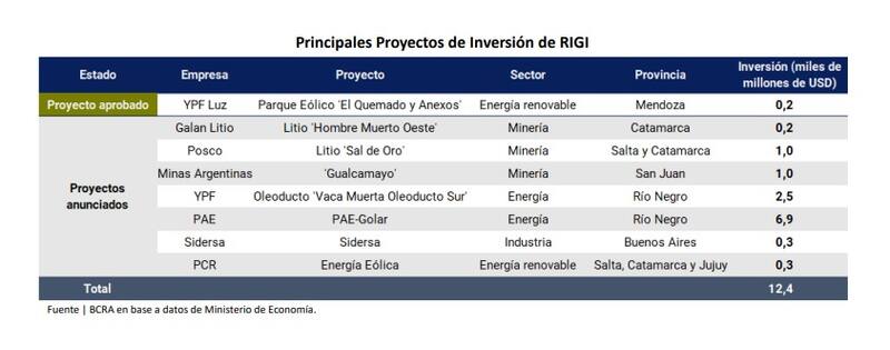 Al flujo de capital antes mencionado, Werning agregó los principales anuncios de inversión en el marco del Régimen de Incentivo a las Grandes Inversiones, que suman u$s 12 mil millones.