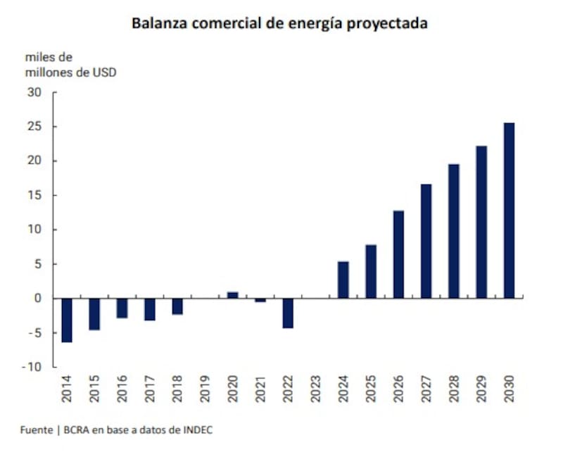 Esto se verá acompañado por un marcado mejoramiento de la balanza del sector energético, tanto así que para 2025 esperan que el saldo se acerque a los u$s 10.000 millones, mientras que para 2030 esperan que ascienda a los u$s 25.000 millones.