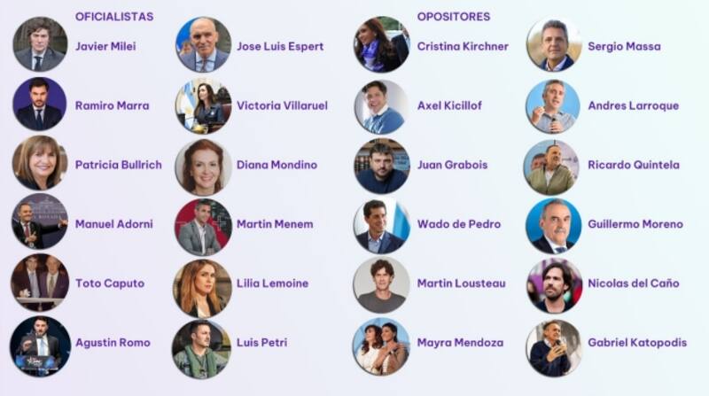 El sondeo trabajó las métricas de 12 dirigentes opositores y las comparó con la misma cantidad de oficialistas. Los elegidos fueron: