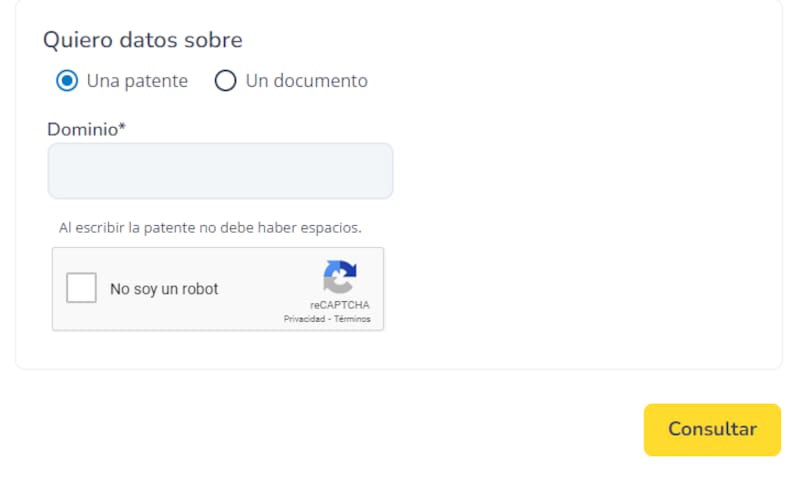 - Ingresar el DNI o dominio del auto (registro numérico que identifica a cada vehículo).
