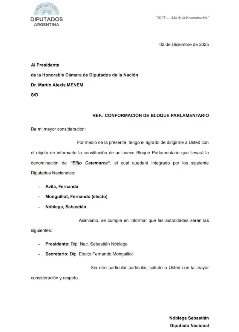 Jalil al cortarse solo, dejó a los mandatarios del NOA con tiempo hasta hoy a la noche para conformar un nuevo bloque en la Cámara de Diputados, antes de la sesión preparatoria en la Cámara de Diputados que se llevará a cabo el miércoles 3 de diciembre.