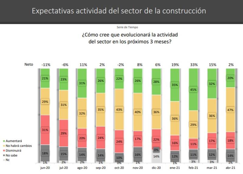 En este contexto, se registró un deterioro de las expectativas de la actividad a tres meses vista. El 20% de las empresas constructoras considera que habrá un incremento de la actividad sectorial, contra un 32% el mes anterior.