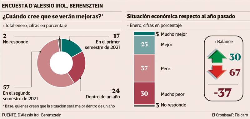 La conclusión surge de la lectura de la última entrega del Monitor del Humor Político y Social que D'Alessio IROL/Berensztein realiza de manera online y en exclusiva para El Cronista. El sondeo elaborado el mes pasado mostró que a pesar de los pronósticos de los especialistas sobre un rebote de la economía este año, la persistencia de las dificultades en materia inflacionaria mellan el ánimo social.