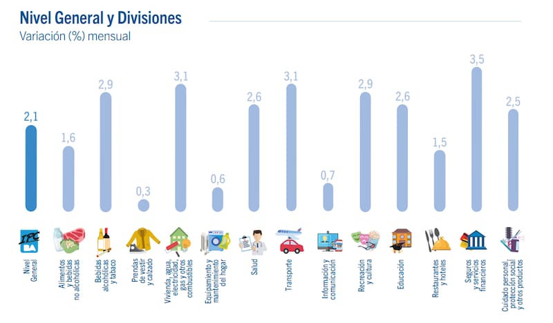Por otra parte, se mantuvo la tendencia de "reacomodamiento de precios relativos", con otro mes donde los servicios aumentaron 2,6%, más que los bienes, que lo hicieron 1,4%.