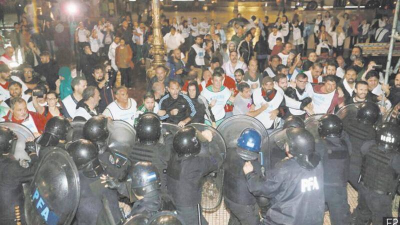 Con Roberto Baradel (Suteba), Eduardo López (UTE) y Sonia Alesso (Ctera) a la cabeza, los docentes llegaron al Congreso por la tarde con estructuras tubulares destinadas a edificar la carpa. Enseguida, agentes del Ministerio de Ambiente y Espacio Público de la Ciudad labraron un acta por "ocupación del espacio público" y dieron parte a la Justicia que, poco más tarde, avaló el operativo policial.