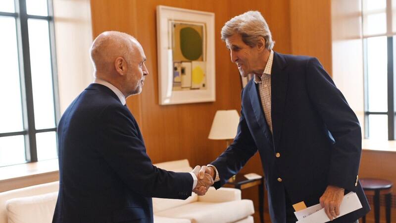 Junto al secretario general y de Relaciones Internacionales, Fernando Straface, Rodríguez Larreta se reunió con John Kerry, quien destacó los resultados del "Consenso de Buenos Aires" alcanzados tras la Cumbre Mundial de Alcaldes de C40 realizada en la Ciudad. Allí el BID, el Banco Mundial y CAF-Banco de Desarrollo de América Latina- ratificaron su compromiso de financiamiento en la región por u$s77.900 millones de dólares hasta 2026.