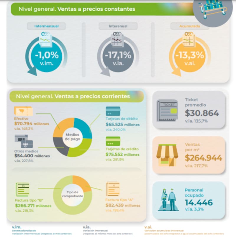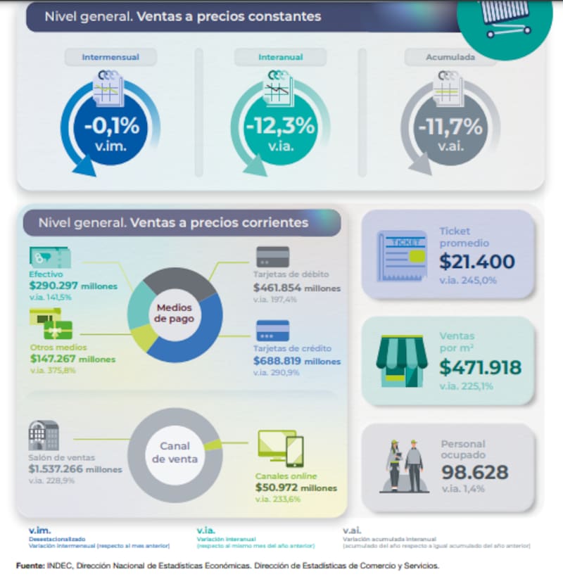 En esta misma línea, las ventas totales a precios constantes en el séptimo mes de 2024 alcanzaron un total de $ 7643,7 millones. Algo que representa una caída de 9% respecto al mismo mes del año anterior.