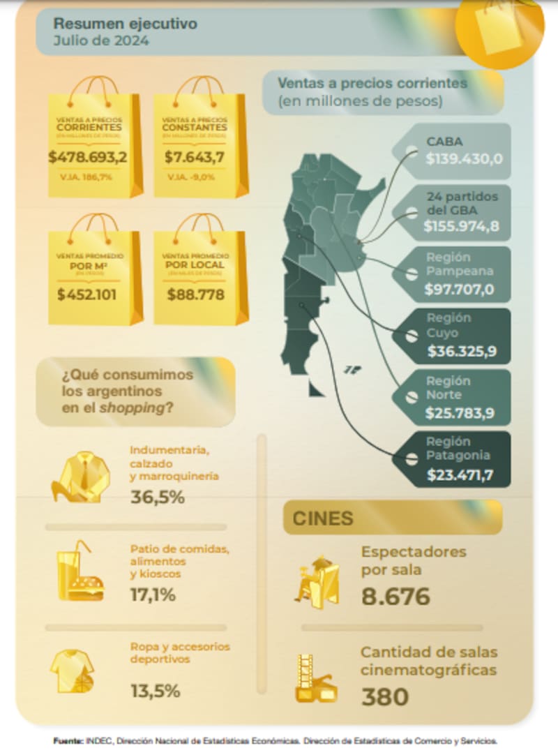Ventas en centros de compras: las principales cifras de julio 2024 según el Indec