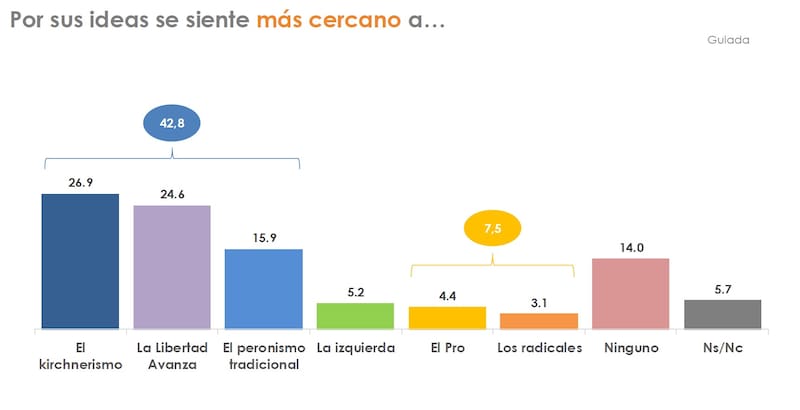 En paralelo, los datos de identidad política muestran un terreno fértil para la oposición: 26,9% se siente más cercano al kirchnerismo y 15,9% al peronismo tradicional, sumando más de 40 puntos de afinidad. De ahí que la síntesis que sugiere la figura del excanciller y exministro de Defensa de pasadas gestiones pueda resultar su principal activo en esta contienda.