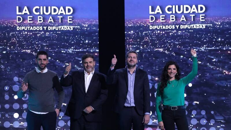 De derecha a izquierda, la postal de los candidatos que encabezan la lista de legisladores porteños funcionó como un pronóstico de lo que vendría después: Eugenio Casielles (La Libertad Avanza) saludó a medias, no tenía bien en claro que hacer con esa mano y en cambio, la otra, la guardó en el bolsillo; Facundo del Gaiso (Juntos por el Cambio) compartió pulgar arriba conMatías Lammens (Unión por la Patria),- y esa sería la única coincidencia de la noche- Celeste Fierro (FIT-U) tenía el puño izquierdo levantado y sonreía con convicción: ya había definido a su oponente.