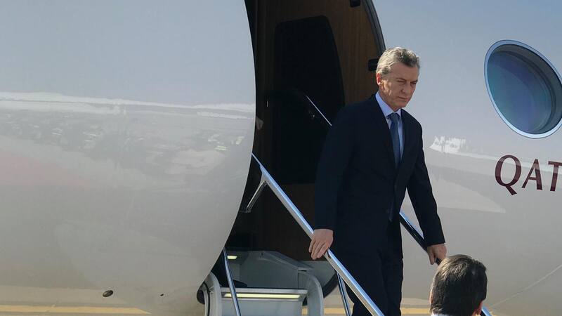 El Presidente está acompañado por el vicejefe de Gabinete, Andrés Ibarra; el canciller Jorge Faurie; el secretario de Asuntos Estratégicos, Fulvio Pompeo; el secretario de Relaciones Económicas Internacionales, Horacio Reyser; el vocero presidencial, Iván Pavlovsky, y el secretario de Agroindustria, Luis Miguel Etchevehere. Además, también viajaron junto a Macri los diputados Emilio Monzó (titular de la Cámara), Martín Lousteau, Oscar Castillo y Marcelo Wechsler, y el senador peronista Alfredo Luenzo, el único dirigente opositor de la comitiva.