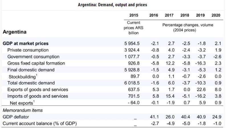 En tanto, la recuperación que la OCDE espera para Argentina en 2020 será dos décimas menor al 2,3% que esperaba hace seis meses.