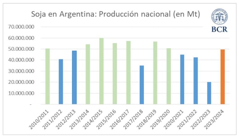 La Bolsa de Comercio de Rosario (BCR) confirmó este miércoles un recorte en las proyecciones para las cosechas de soja y de maíz 2023/24 que se ubicarán en torno a 49,5 millones y 57 millones de toneladas, respectivamente, por el impacto de la ola de calor de más de 10 días, entre fines de enero y principios de este mes.