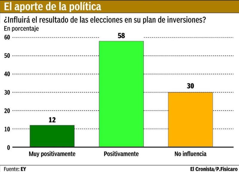 Pablo De Gregorio, socio de EY, presentó los resultados y remarcó que, comparado con los resultados de las encuestas en los últimos años, el actual estudio "quizás sea de los más optimistas". Existe entre las empresas una percepción de menor riesgo y una auspiciosa correlación entre inversiones y empleo, indicó. En ese sentido, 60% de los consultados afirmó que contratará personal el próximo año para implementar su plan de inversiones.