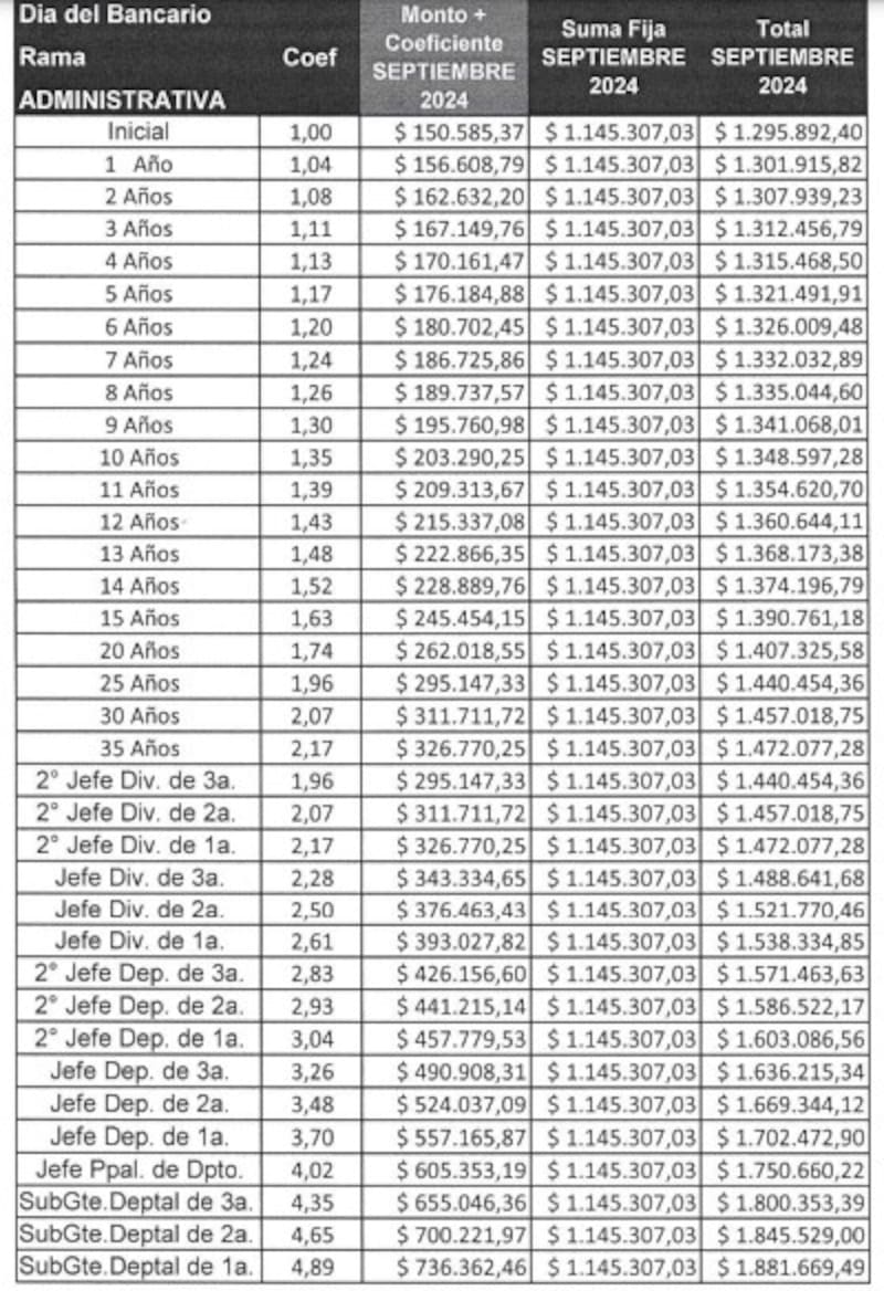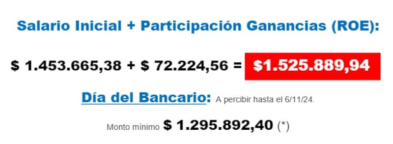 La suba también impactará en el bono por el Día del Bancario, que en nuestro país se celebra el próximo 6 de noviembre y cuyo piso se ubica ahora en $ 1.295.892,40.