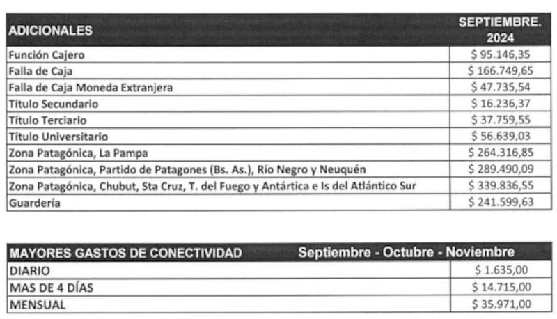 Los empresarios "deberán abonar la diferencia que surja entre la inflación acumulada entre los meses de enero a septiembre 2024 inclusive, tomando como referencia los salarios de diciembre 2023, y los incrementos ya otorgados en el 2024. Dicho incremento representa un 3,5% con respecto al mes de agosto. El mismo deberá ser abonado junto con los salarios del mes de octubre", detallaron desde La Bancaria.