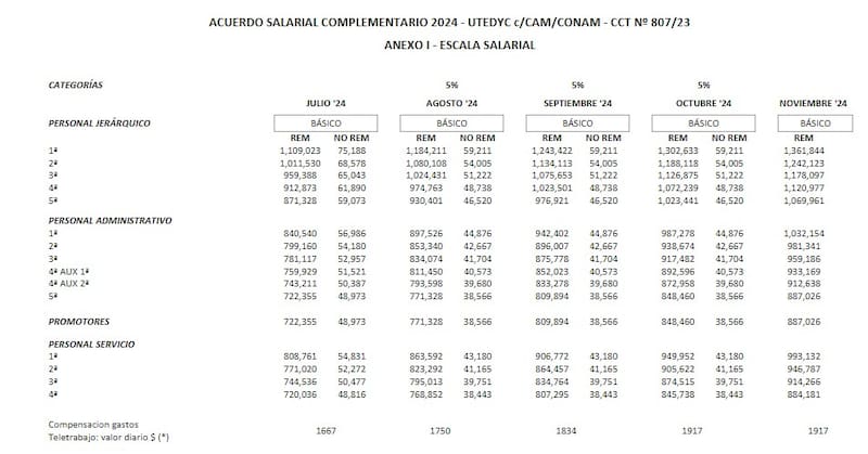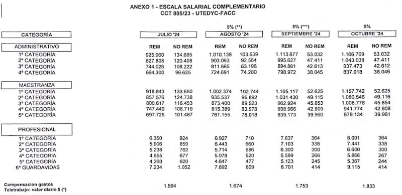 Paritarias UTEDYC: con aumento, cuánto cobro en septiembre y cómo quedan las escalas