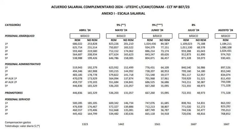 UTEDYC anunció que el incremento se dará en tres cuotas durante el trimestre vigente bajo el siguiente orden: