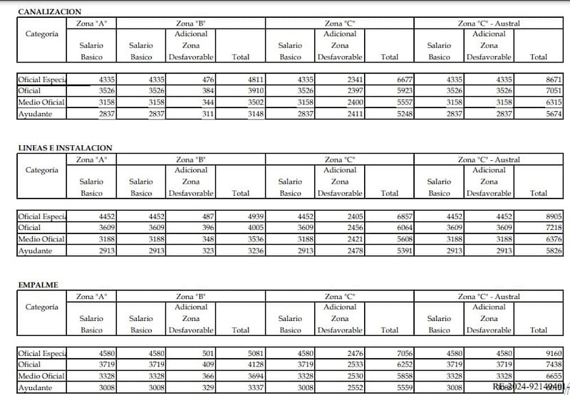 | CATEGORÍA | BÁSICO ZONA A | ADICIONAL ZONA B | ADICIONAL ZONA C | ADICIONAL ZONA C AUSTRAL |