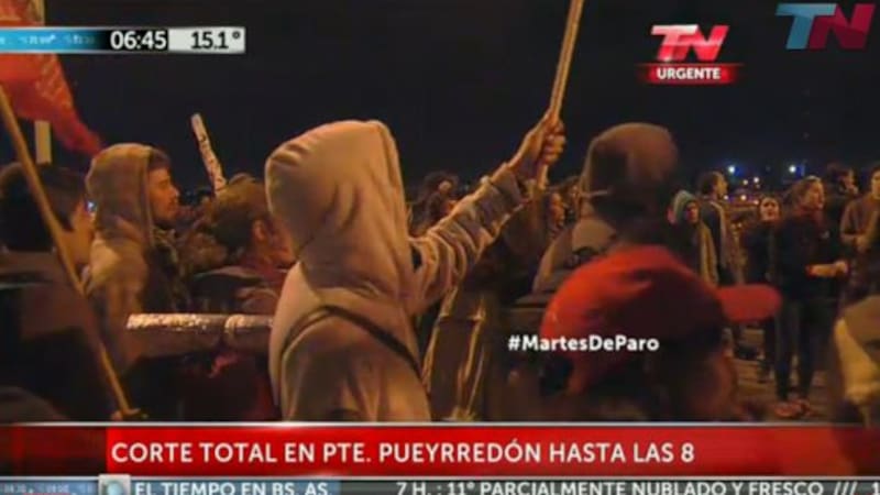 Minutos después de las 5, militantes del MST cortan el Puente Pueyrredón, que une el sur del conurbano bonaerense con la Capital Federal.