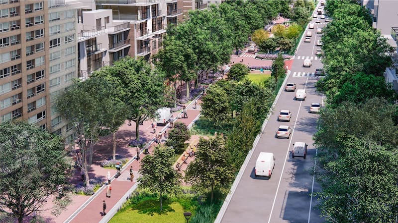En materia de biodiversidad se sumarán 204 nuevos árboles de 18 especies y se instalará un sistema de drenaje sostenible que filtra, drena y retarda la llegada del agua de lluvia a la red pluvial de la Ciudad.