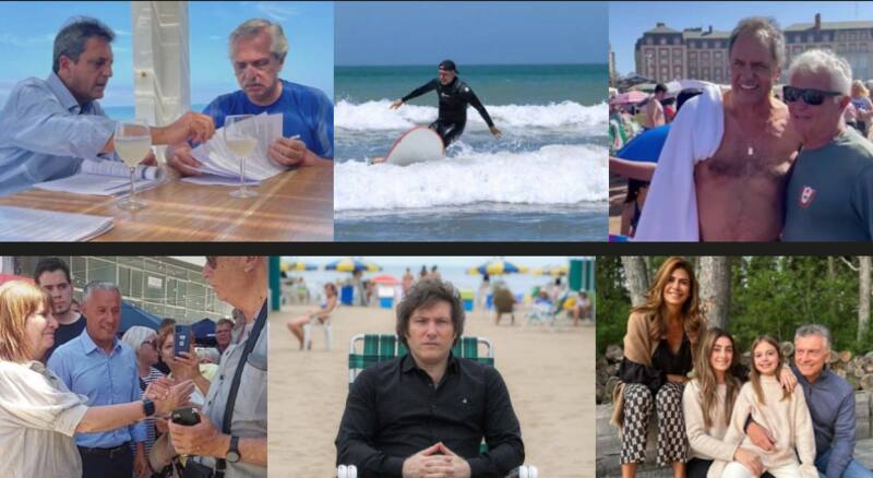 Además, los referentes políticos compartieron sus fotos en la playa: en la arena, con deportes acuáticos o tomando sol. Desde la década del 90 "es una foto que no falla".