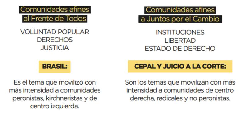 El informe destaca que en la Argentina hay un "consenso en torno a la defensa de la Democracia. Sin embargo, el significado que se le da y las cualidades que se destacan y se defienden dependen del color político: cada comunidad resalta valores distintos. Hubo más de 37.000 menciones sobre el tema y fue agenda de la política".
