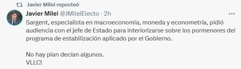 Cumbre Milei-Tom Sargent: cuándo y dónde será