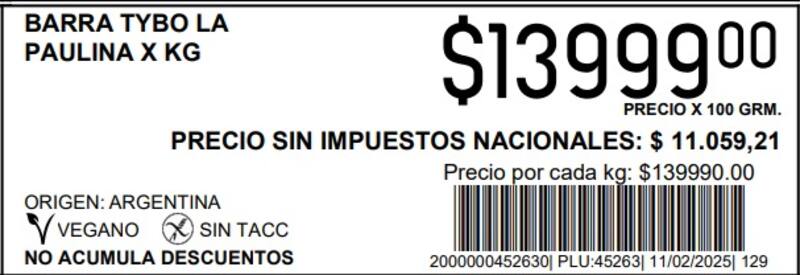 "Deberá informarse en caracteres tipográficos menores a los utilizados para la exhibición del precio final, el importe neto sin la incidencia del Impuesto al Valor Agregado (IVA) y de los demás impuestos nacionales indirectos que impacten en los precios, acompañado de la leyenda "Precio sin impuestos nacionales"", establece el artículo de la resolución con esa obligación.