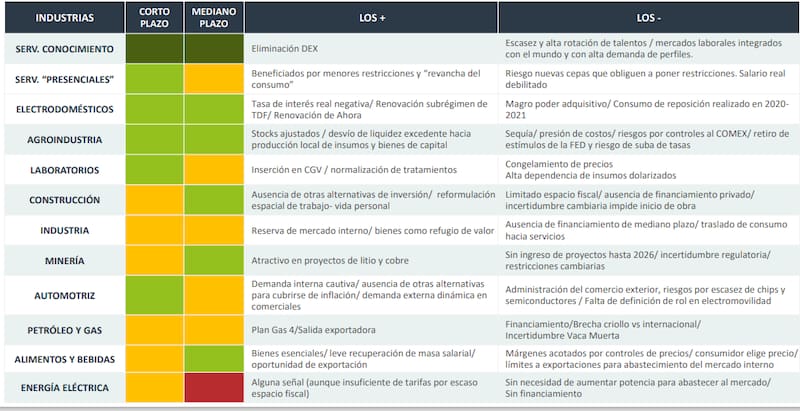 A su vez, entre los desafíos actuales enumerados, la compañía planteó que la normalización de las actividades presenciales y el consumo de revancha ponen al entretenimiento y la hotelería como tractores de una recuperación de bolsillos flacos (aunque la amenaza de Ómicron desafía a aquellos que dependen del turismo receptivo). "‘Restricciones COVID' y súper cepo con salarios en dólares bajos generan turistas cautivos y sostienen consumo de indulgencia", evaluó.