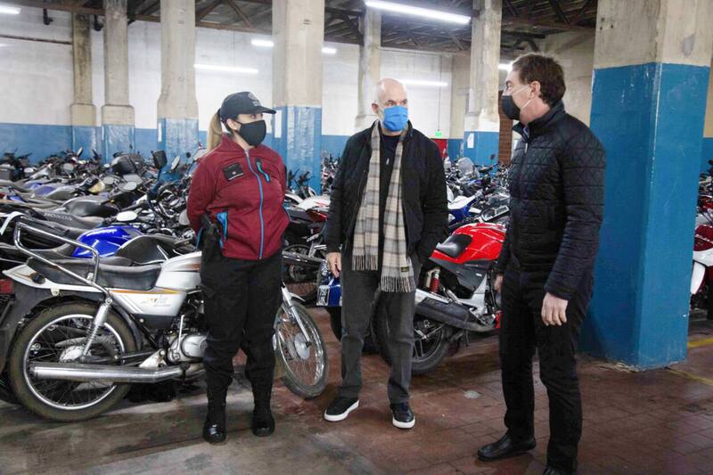 Rodríguez Larreta y Santilli supervisaron en Barracas el funcionamiento del programa de compactación de motos secuestradas