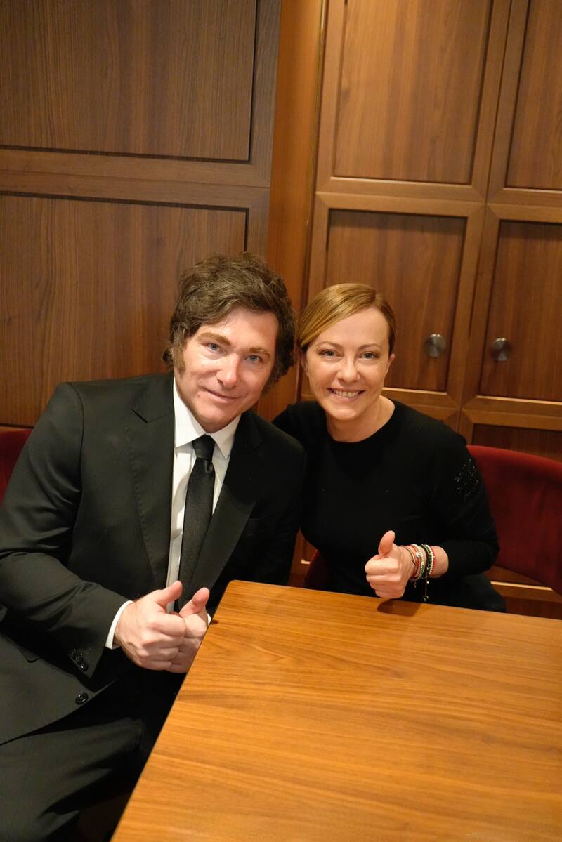 Meloni, que otorgó el pasado diciembre la ciudadanía italiana a Milei, en reconocimiento a la "descendencia", manifestó en repetidas ocasiones su afinidad ideológica con el mandatario argentino.