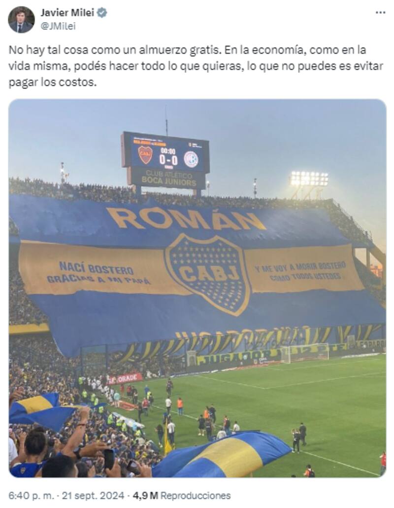 Javier Milei también apuntó contra Juan Román Riquelme tras la derrota de Boca en el superclásico. El Presidente usó sus redes sociales para criticar el liderazgo de exfutbolista a quien ya fustigó en las últimas elecciones del club cuando votó a favor de Mauricio Macri.