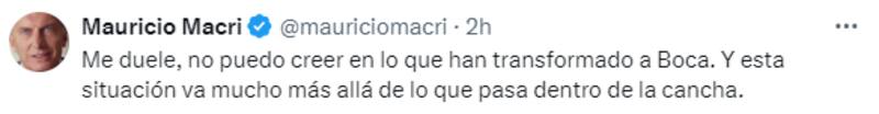 "Me duele, no puedo creer en lo que han transformado a Boca", afirmó Macri citando un tuit de Andrés Ibarra, a quien acompañó en la fórmula presidencial durante el último proceso electoral en la institución de la Ribera.