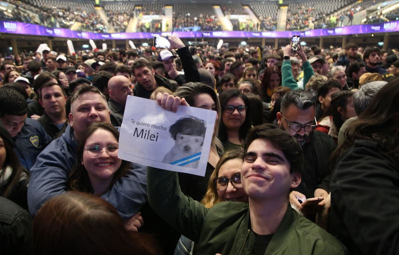 Allí el exfuncionario realizó una arenga al público propia de un animador y se cantó una canción que se hizo viral en las redes sociales y es una reversión de un jingle de campaña del peronismo en la vuelta de la democracia: "Traigan al gorila de Milei, para que vea que este pueblo no cambia de idea, lleva la bandera de Evita y Perón".