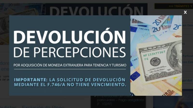 Los ciudadanos que sufrieron percepciones por compra de dólares ahorro, pagos con tarjetas en el exterior o compras de paquetes turísticos entre 2012 y 2014 y que no pudieron compensarlos con otro impuesto, ya pueden ver en la página de Internet de la AFIP si está aprobada la devolución cuya primera cuota se pagará el próximo 16 de este mes.